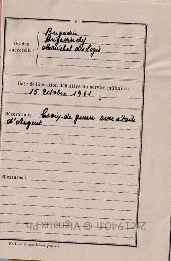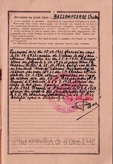 Victor n’a pas fait à ses proches de récit détaillé de ses combats de 1940. Son livret miliaire permet de comprendre que Victor a participé à l’inégralité de la campagne de 1940 du 2ème Cuirasisers puisque il est démobilisé par le Centre de Démobilisation de Nontron (Dordogne) comme de nombreux autres combattants.