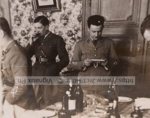 - La popote des 3ème et 4ème escadrons Hotchkiss est dirigée par le Lt Lusson. Sont visibles sur cette photo : Pierre Chenu et Auguste Deymier